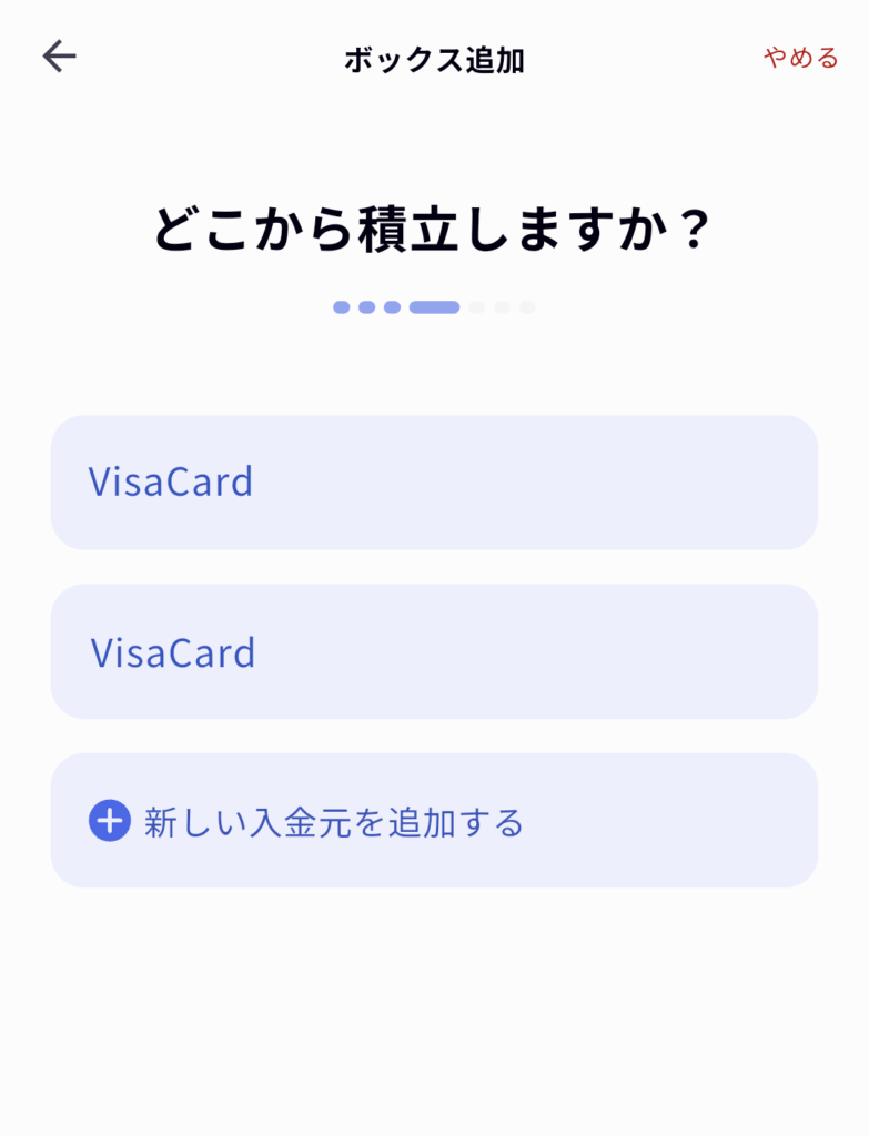 5. 設定してある入金元か、「+新しい入金元を追加する」をタップ