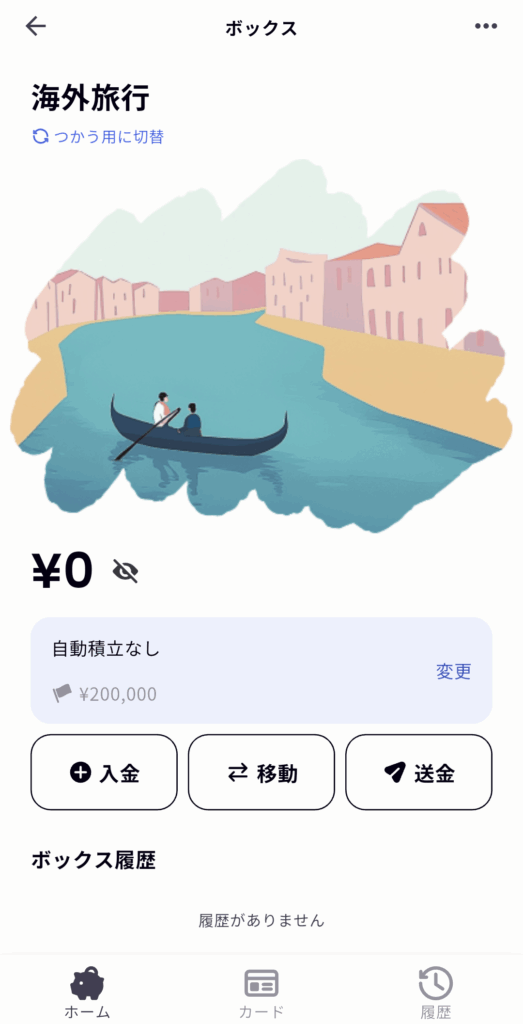 1. ためる用ボックスの自動積立をしたいボックスをタップ