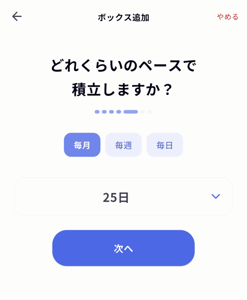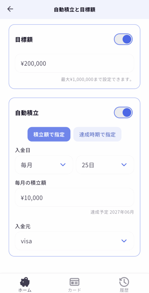 2. 「目標額を決めて貯める」あるいは「目標額を決めず貯める」を選んでタップ