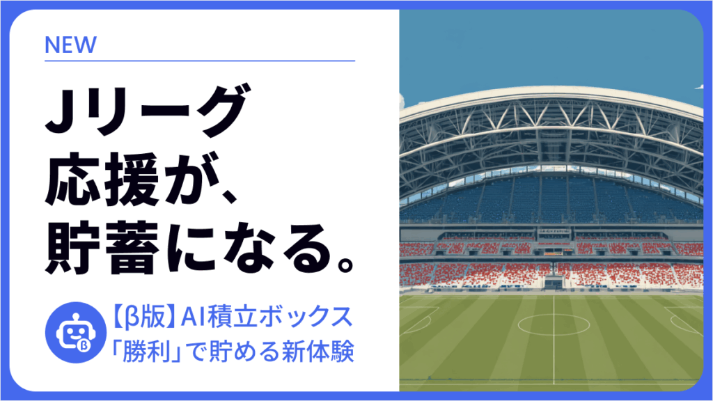 IDAREは、「プロ野球応援ボックス」に続くAI積立ボックスβ版の第2弾として、好きなチームを応援しながら貯められる「Jリーグ応援ボックス」をリリースしました。このJリーグ応援ボックスは、指定したJリーグのチーム(J1〜J3まですべて対象)が勝利するごとに自動で入金して貯めることができます。ますます選択肢が広がる「応援しながら貯める」という新感覚の貯蓄体験をぜひ味わってみてください!
